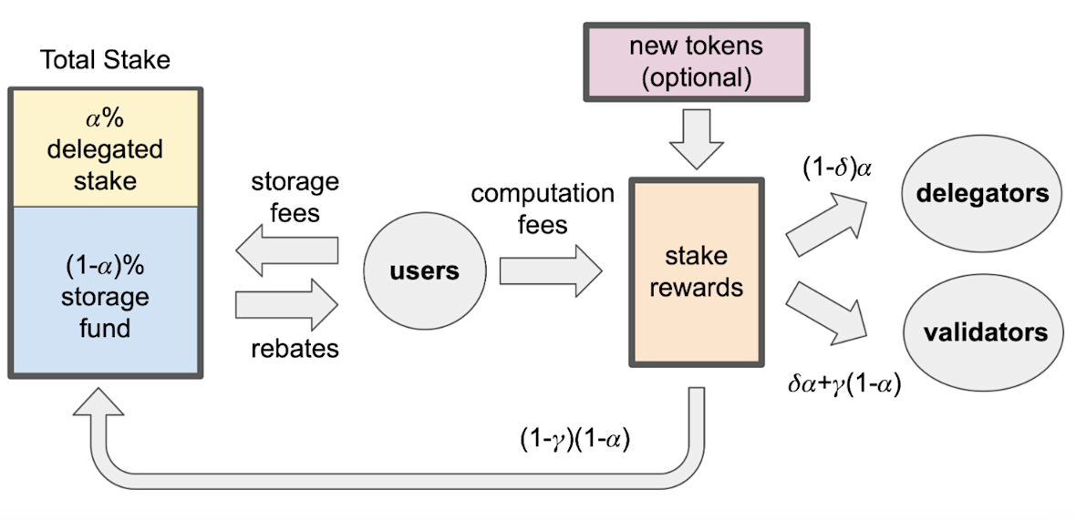 This economic model keeps the validators efficient, rewards the users for delegating tokens, and maintains funding for storage, scaling, and transaction overhead costs.